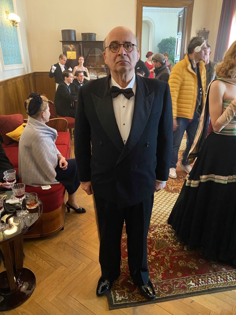 Harrison invites László to a party, where he is greeted as a distinguished guest but is also aware of teasing and whispering. Harrison commissions László to build a community center in honor of his late mother that includes a library, theater, gymnasium, and chapel after learning about his background as a successful architect in Europe and his desire to leave a lasting legacy. Work starts right away, with László living and working on the property and hiring Gordon, who has also developed into a fully functional heroin addict. The immigration of Erzsébet and Zsófia to the United States is accelerated for László’s services by Harrison’s personal attorney played by Peter Polycarpou.