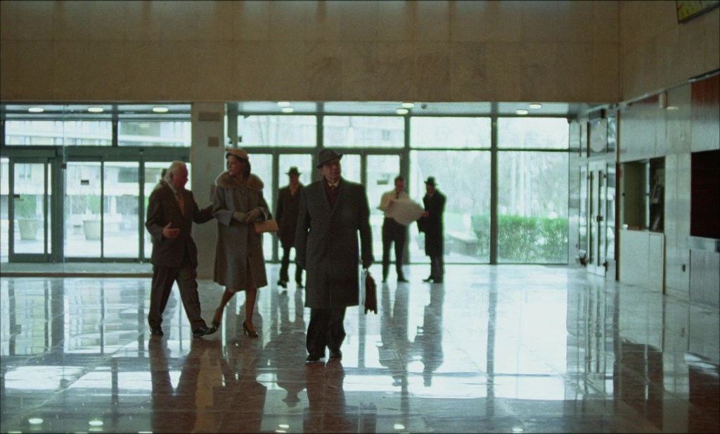 When Laszlo first meets Erzsebet and Zsofia at the train station in 1953, he learns that Erzsebet has osteoporosis and is now a full-time wheelchair user, and Zsofia has become mute as a result of the conditions and traumas endured during the war and its aftermath. When Laszlo discovers that the materials and design of the center have been altered without his consent, he clashes with the other developers. Even though László plans to pay for the supplies he needs to realize his vision, Harry tells him to keep his distance, claiming he is only “tolerated,” and he makes obscene sexual references to Zsofia, whom László advises not to approach, even though he may have already abused her. Later on, the train that was transporting László’s supplies derails and crashes, seriously wounding two brakemen. Due to the anticipated legal fees and the higher cost of transporting the materials, Harrison decides to stop the construction and fires László and all laborers.